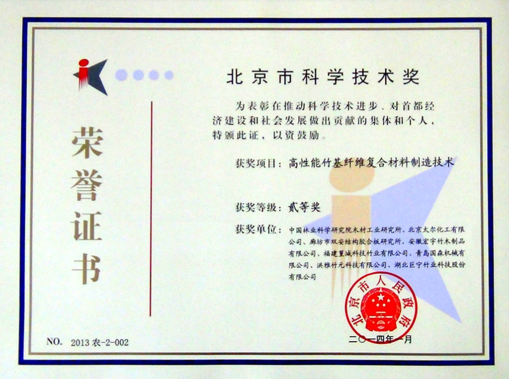 科研合作伙伴: 中国林业研究院 国家竹产业研究院、国际竹藤中心、南京林业大学、东北林业大学、四川农业大学、湖北省林科院、湖南省林科院、广东省林科院、大连理工大学、山东省林科院、四川大学、原国家林业局北京林业机械研究所等